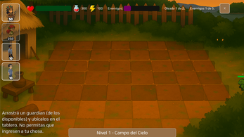 - Base jugable: Guardianes vs Monstruos (torres/plants que se colocan en celdas, enemigos avanzan en líneas).